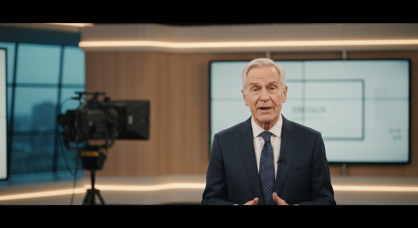 - Framing: "Medium shot, centered, professional presentation style"